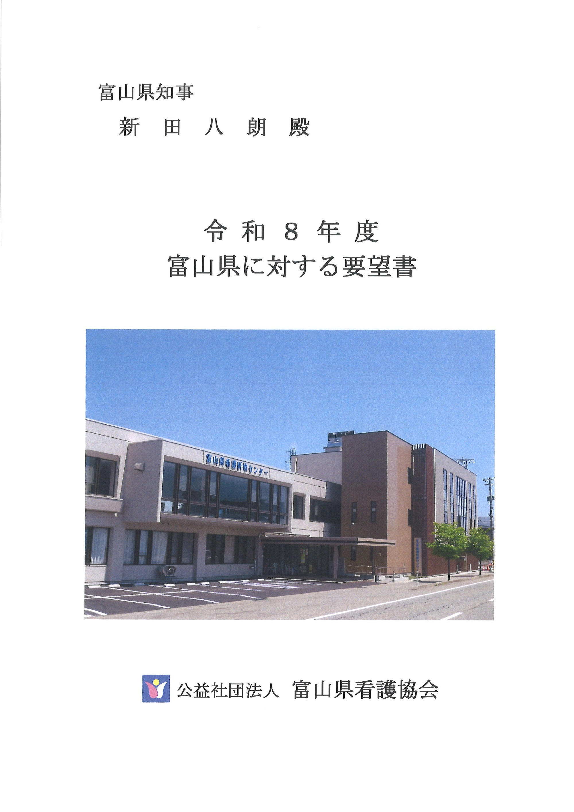 富山県看護協会は、県民の健康と福祉に貢献する看護職能団体としての使命を果たすため、富山県知事あての要望を岡本会長から県へ提出しました。